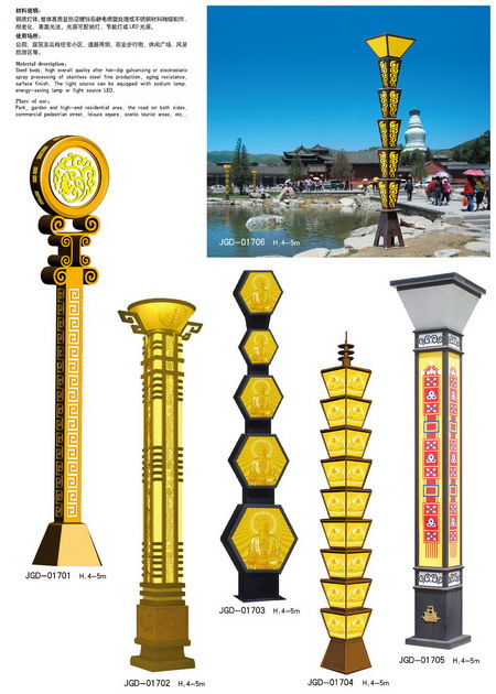 景觀燈分類:城市標志性景觀燈、仿古景觀燈、鏤空現代景觀燈、不銹鋼景觀燈、藝術造型景觀燈等