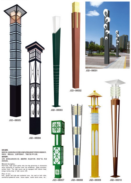 景觀燈分類:城市標志性景觀燈、仿古景觀燈、鏤空現代景觀燈、不銹鋼景觀燈、藝術造型景觀燈等
